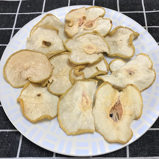 一級雪梨乾🍐 重量:500克 產地:中國 保存期限:12個月 天然生曬 食用:保湯丶泡茶 👉🏻功效:潤肺生津、清熱化痰丶治風熱丶降火止渴丶解毒丶滋潤肌膚和喉嚨,特别適合秋天食用。不寒不燥,男女老少均皆宜。 雪梨乾含有豐富的膳食纖維和維他命B群丶C丶E,對增強抵抗力丶纖體修身有不錯的功效。豐富可溶性和不溶性的膳食纖維,可溶性纖維有助於控制血糖和胆固醇水平,而不溶性纖維能促進腸蠕動,有效保持身體健康。 雪梨乾採用低溫烘乾技術,比經新鮮雪梨更加潤而不寒,而且容易儲存和攜帶。 營養成分(每100克)👉🏻 蛋白質0.1克 脂肪0.1克 碳水化合物6.7克 膳食纖維6.7克 維生素C4 3克 鈣22毫克 磷19毫克 鐵1.2毫克 鋅2.61毫克 鉀79毫克 鈉3.7毫克 鎂8毫克 含糖量10% 酸0.03% 灰分0.12% 熱量28卡 儲存建議: 請存於陰涼乾燥處,避免陽光直射。 食譜😊 🟢清潤雪梨西洋菜湯 (2人份量) 材料👉🏻 西洋菜半斤 (洗淨) 雪梨乾4-5片(洗淨) 蜜棗/紅棗2粒 (洗淨) 鹽少許 做法👉🏻 先將雪梨乾和棗放入煲中加水煲滾,然後放入西洋菜大火煲滾起後,然後轉細火煲2小時,落鹽調味便可。 🟢 雪梨乾羅漢果豬𦟌滋潤湯 (2人份量) 材料👉🏻 豬𦟌1斤 (洗淨丶氽水) 羅漢果半個 (洗淨) 雪梨乾4-5片(洗淨) 蜜棗/紅棗2粒 (洗淨) 鹽少許 做法👉🏻 先將羅漢果丶雪梨乾和棗放入煲中加水以大火煲滾後,放入豬𦟌再滾起,然後轉細火煲2小時,落鹽調味便可。 🟢 雪梨乾茶 將3-5片雪梨乾放入杯中,加入300ml熱水,蓋上杯蓋焗10-15分鐘即可飲用。 🟢蜂蜜雪梨乾茶 將3-5片雪梨乾放入杯中,加入300ml熱水,水溫約在80度左右,蓋上杯蓋焗10-15分鐘,落1茶匙蜂蜜拌勻即可飲用。 * 如果沒有蜂蜜,可以加冰糖代替。 🟢 雪梨乾羅漢果茶 將3-5片雪梨乾丶1/4羅漢果放入杯中,加入300ml熱水,水溫約在80度左右,蓋上杯蓋焗10-15分鐘,即可飲用。